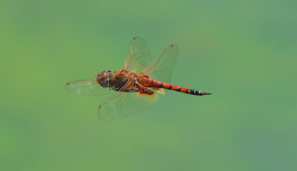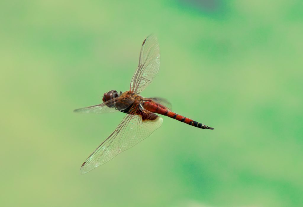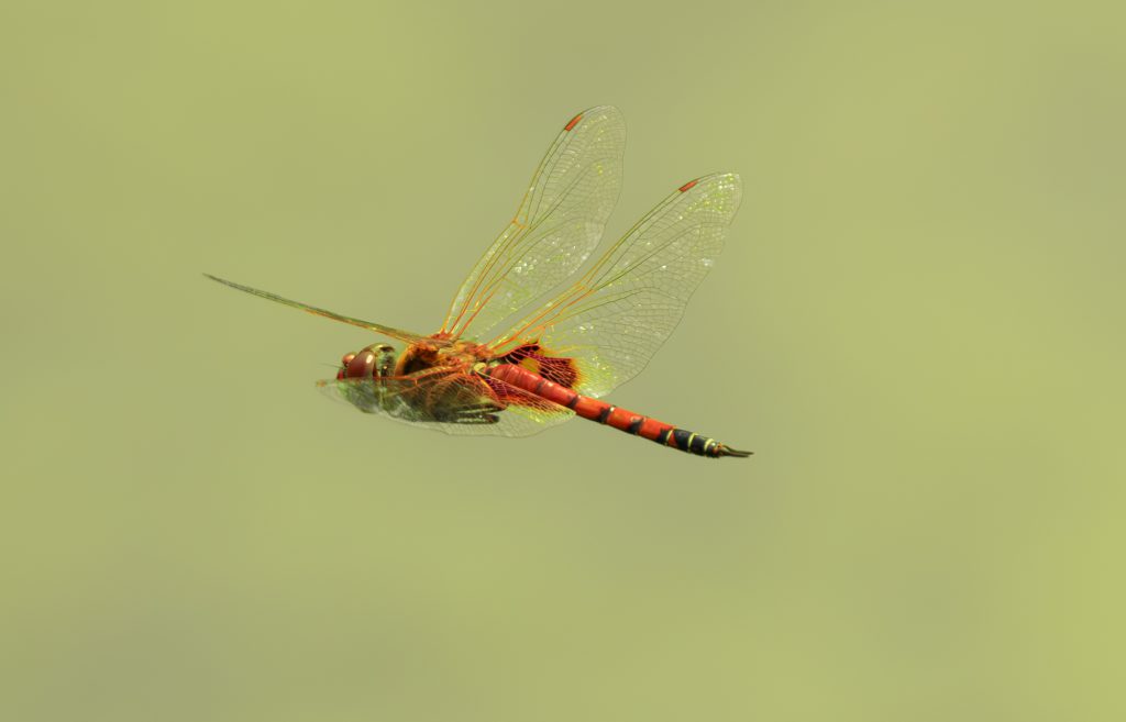 This frame intentionally retains motion blur in the wings, using a shutter speed closer to 1/1250s. While technically less “sharp,” the image conveys a stronger sense of movement. Such frames are important in providing a more complete representation of dragonfly flight behavior.